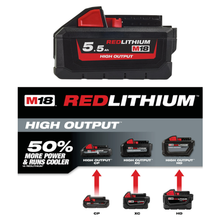 Der neue M18 5,5 Ah HIGH OUTPUT-Akkupack bietet bis zu 50 % mehr Leistung