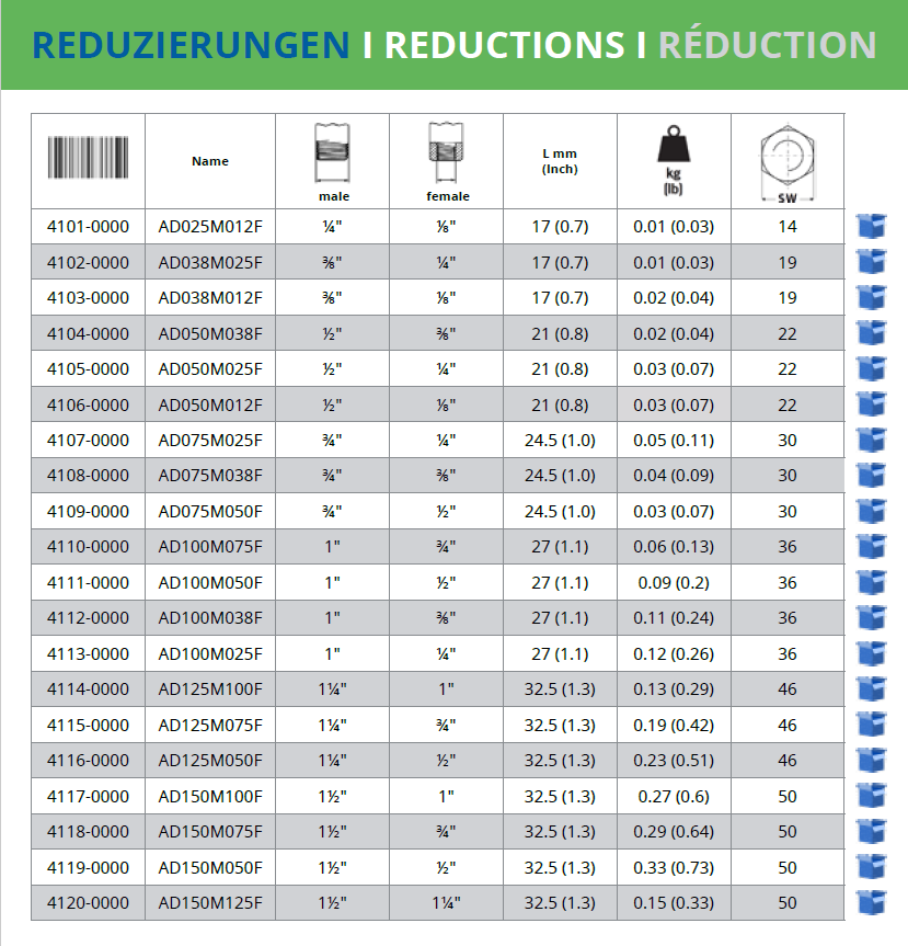 Reduzierung - Adapter, AG 1" - IG 1/4"
