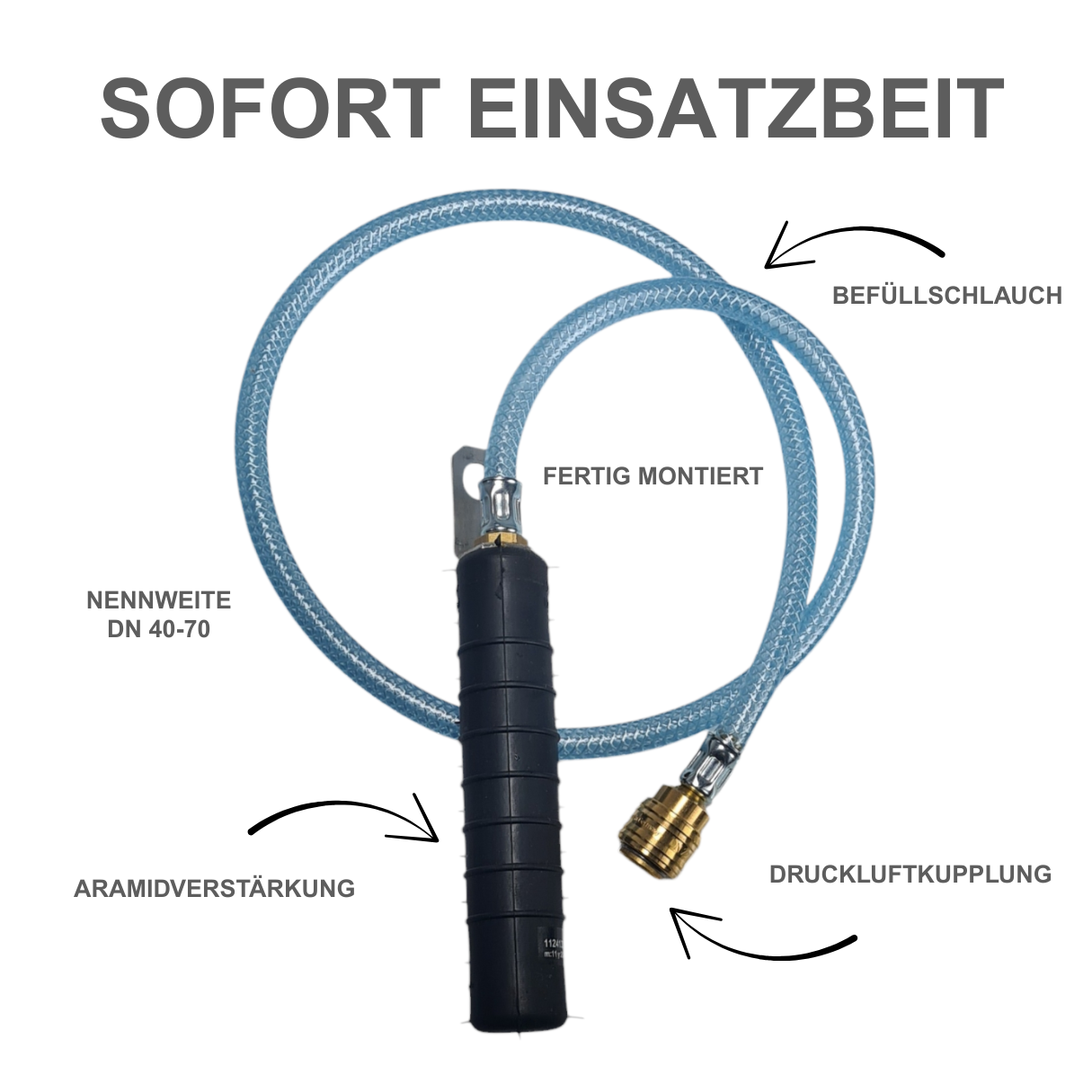 Verfügbare Druckluftschlauchlängen: 1 m, 2 m, 3 m, 4 m, 5 m