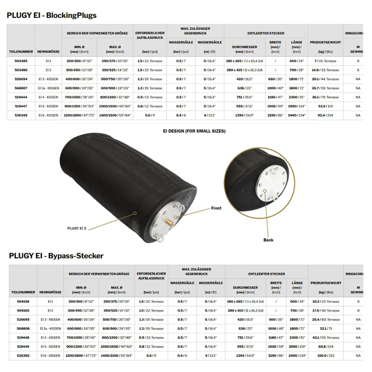 Rohr-Absperrblase Plugy EI 4, 700/1050, 800/1200, eiförmig