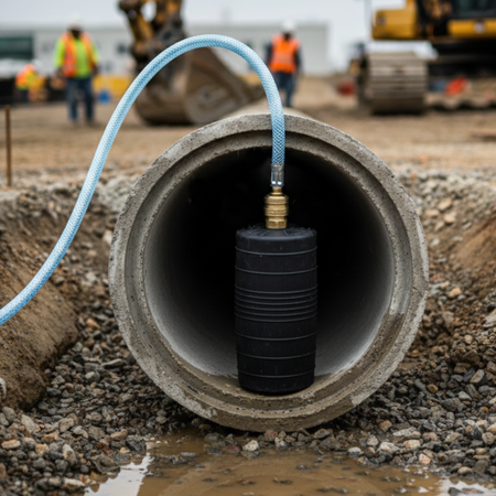 Verschließen und Prüfen von Abwasserleitungen und Rohrsystemen. Feuerwehr: