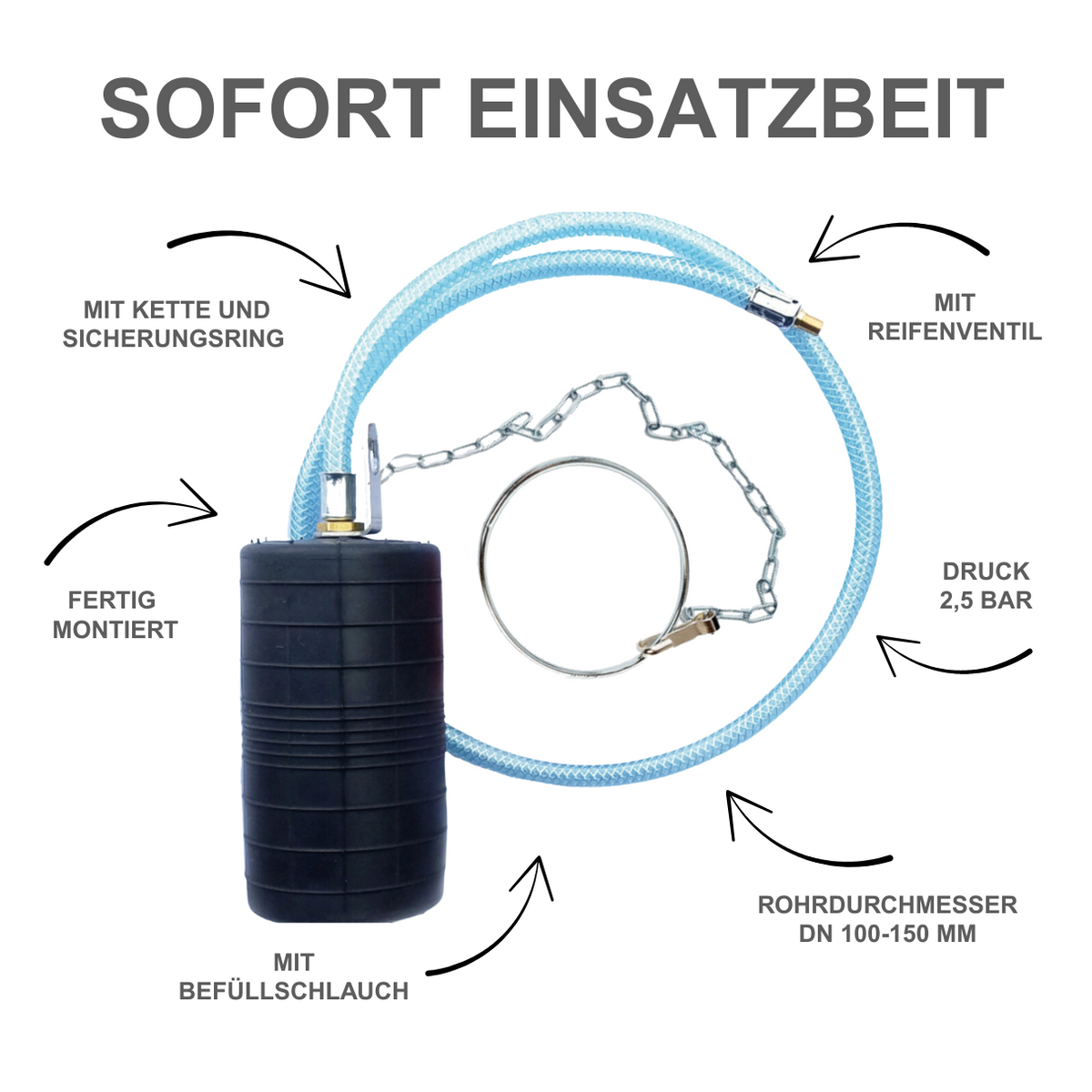 und Druckluftschlauch Erhältlich für Rohrdurchmesser von 20 mm bis 305 mm