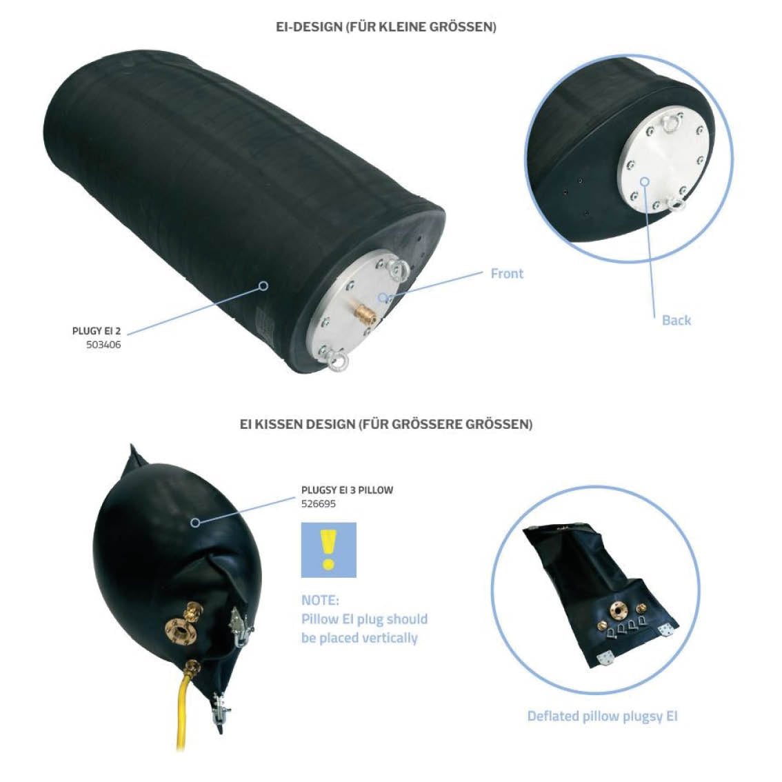 Unsere Durchgangsblasen und Durchgangskissen im Ei-Profil sind die ideale
