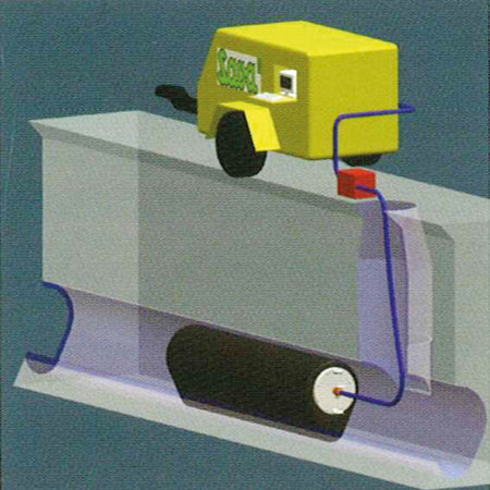 - Abmessungen (entleerte Rohrblase): Ø 420 mm, Breite: 660 mm, Länge: 1800 mm