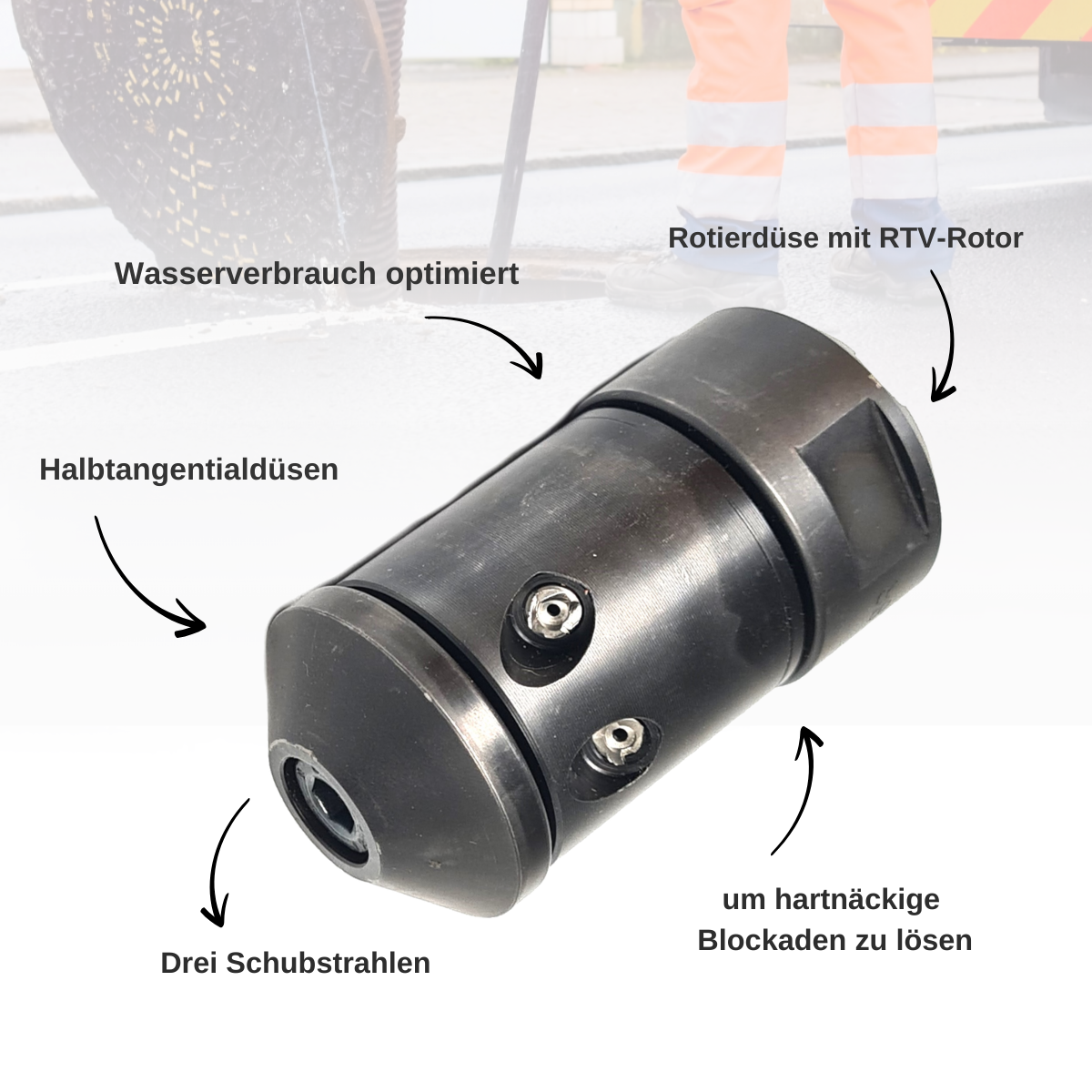 RTV-Rotierdüse 100 mm, 1" mit Keramikeinsätze
