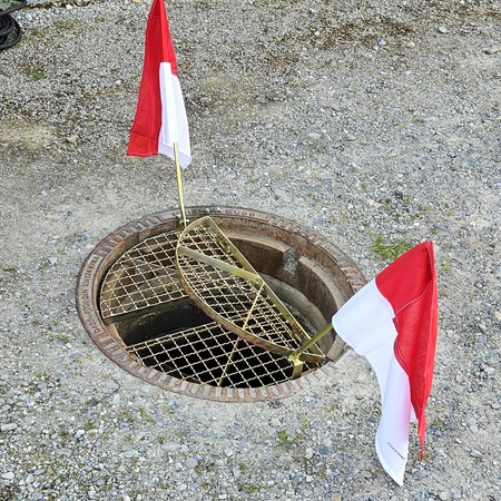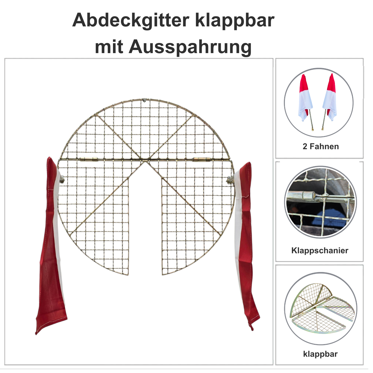 Schacht Abdeckgitter klappbar - Ø 670 mm, mit Aussparung (2 Fahnen)