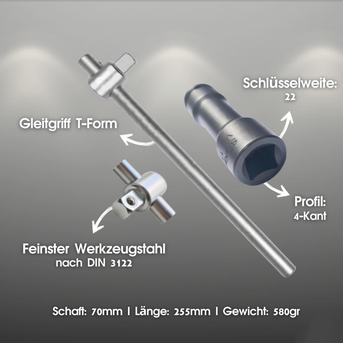 Die Stecknuss 1/2" IVKT mit 22 mm Schlüsselweite inklusive Gleitgriff in T-Form