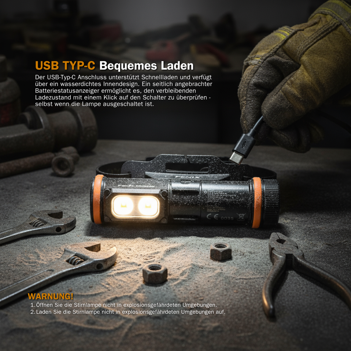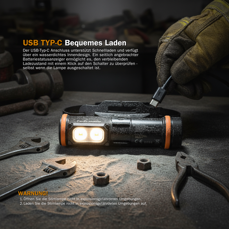 Stirnlampe, die speziell für anspruchsvolle Arbeitsumgebungen entwickelt wurde.