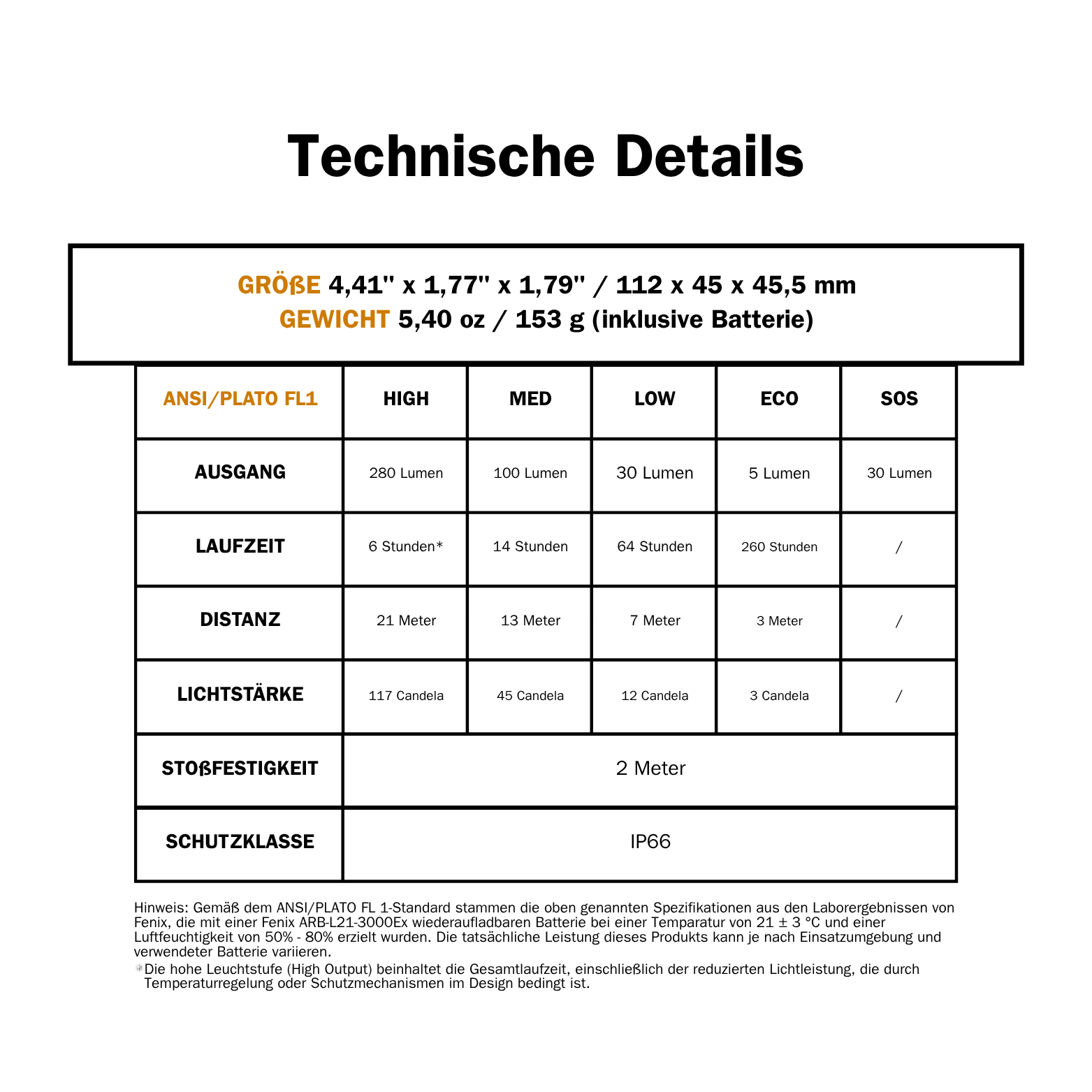 Leuchtleistung Extrem-Modus gem. ANSI/Plato FL1*
