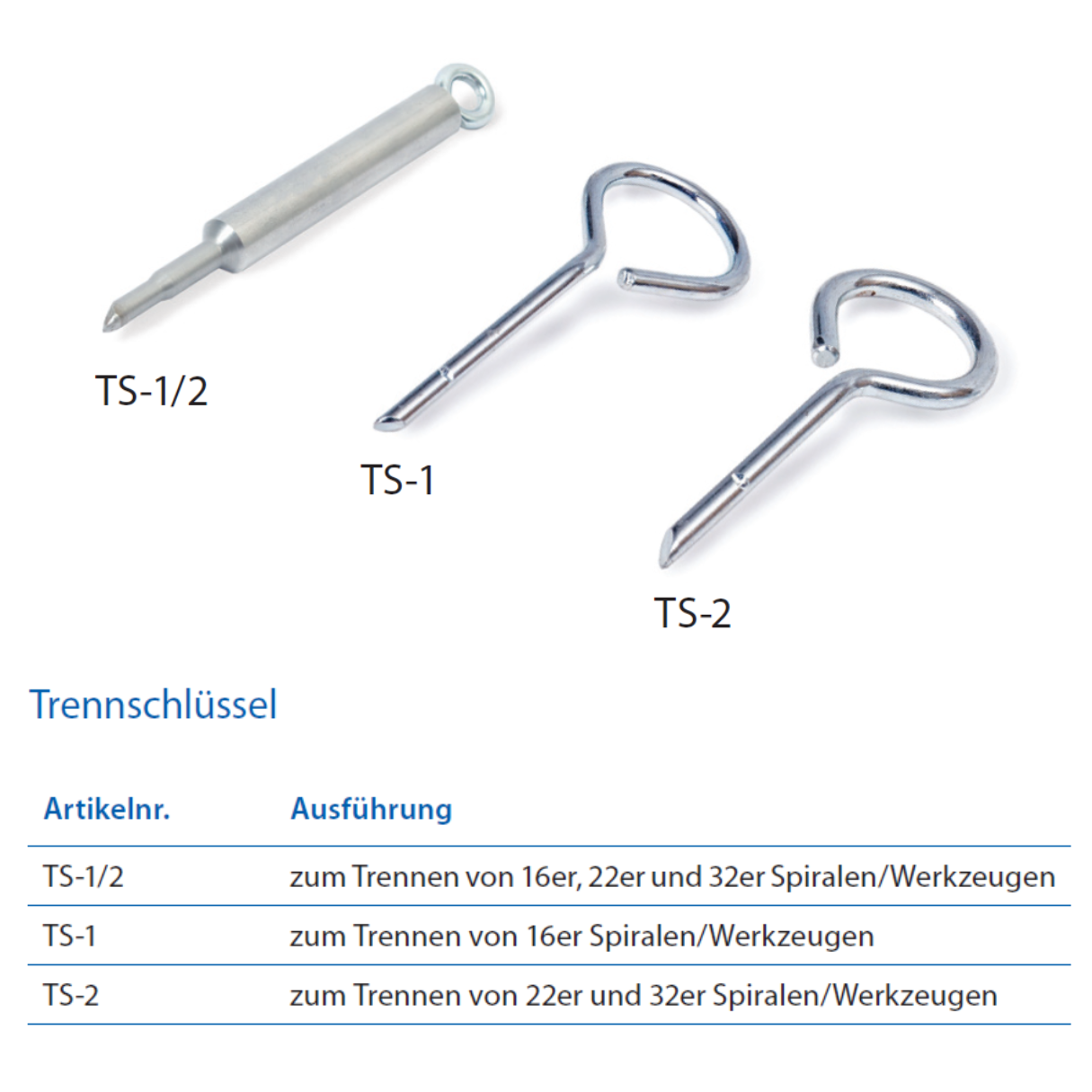 Trennschlüssel 22er und 32er Spiralen- und Werkzeug