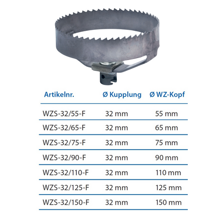 32 mm Kupplung: Ø 55 mm, 65 mm, 75 mm, 90 mm, 110 mm, 125 mm, 150 mm